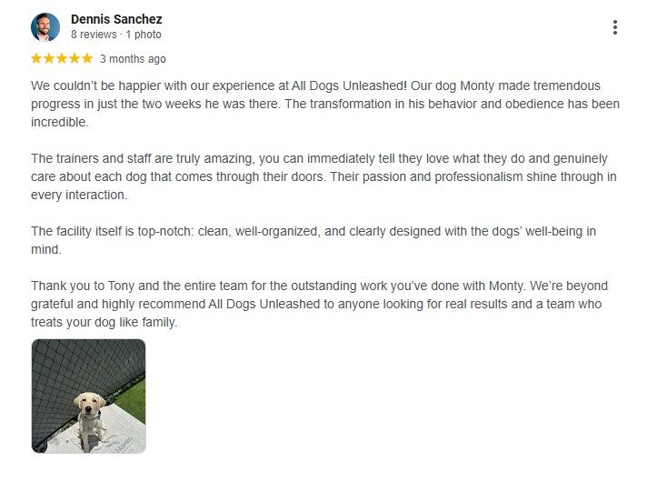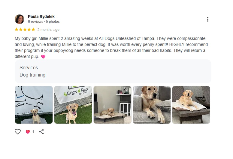 Welcome to the All Dogs Unleashed Tampa testimonials page — where real clients share their success stories!